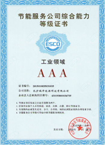 瑞澤能源榮獲節(jié)能服務(wù)公司綜合能力AAA等級(jí)證書